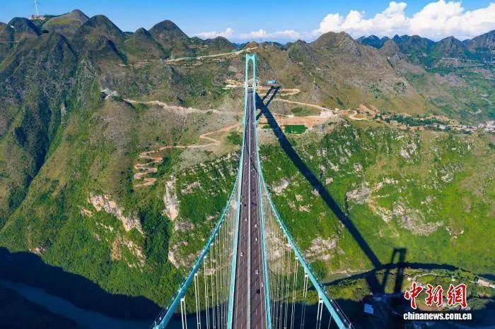 9月28日,世界第一高橋——貴州六枝至安龍高速公路花江峽谷大橋正式通車運(yùn)營(yíng)。(無(wú)人機(jī)照片) 中新社發(fā) 龍建睿 攝