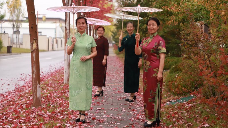 小鎮(zhèn)的雨,是天地間最奇妙的調(diào)色盤,它懂得用豐富的色彩調(diào)和季節(jié)的輪回。打濕銀杏時,雨便成了金黃;灑落楓樹時,雨便成了火紅;浸潤松柏時,雨又化作濃綠……長街、小路被洗的油亮,早落的黃葉,粘在濕漉漉的石面上,像一枚精致的書簽,應(yīng)和著“秋雨梧桐葉落時”的意境;路上的行人并不匆忙,而是踏著雨聲的節(jié)拍,在“斜風(fēng)細雨不須歸”的悠然中,邂逅墻角那叢“菊散金風(fēng)起”的絢爛。偶有身著旗袍的女子,撐一把油紙傘,在飄落一地的紅楓葉上款款漫步。那身影穿過雨幕,恍若從水墨長卷中走出的意象,在現(xiàn)實與夢境之間翩翩起舞;雨聲里飄來山居食堂的暖香,水汽與雨霧在空中交融,織就“寒夜客來茶當酒”的溫潤時光。