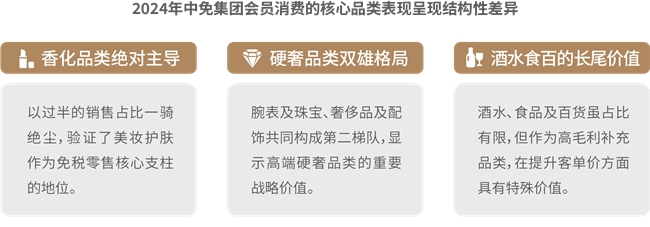 8.消費(fèi)呈現(xiàn)“美妝霸榜”、“硬奢守局”、“酒水突圍”新格局。香化方面,彩妝香水增長(zhǎng)亮眼,外籍旅客、男性客群、國(guó)潮品牌成為重要增長(zhǎng)點(diǎn),中免通過(guò)“線下定制護(hù)膚方案+線上精準(zhǔn)推送”提升復(fù)購(gòu);奢侈品及配飾方面,消費(fèi)結(jié)構(gòu)多元化,超高端市場(chǎng)增長(zhǎng)顯著,輕奢區(qū)間保持穩(wěn)定需求,中免以“私人導(dǎo)購(gòu)+機(jī)票報(bào)銷”等尊享服務(wù)鎖定高端客群;腕表及珠寶方面,品類分化顯著,首飾品類同比增長(zhǎng),腕表需求區(qū)域性特征突出;酒水方面,市場(chǎng)擴(kuò)容升級(jí),品類及人群消費(fèi)分層顯著,渠道互補(bǔ)發(fā)展,呈現(xiàn)出規(guī)模擴(kuò)張與結(jié)構(gòu)升級(jí)并行的顯著特征;食品及百貨方面,市場(chǎng)穩(wěn)健擴(kuò)容,圈層特征鮮明,Z世代和銀發(fā)人群引發(fā)情感和健康消費(fèi)變革,中免針對(duì)性布局“國(guó)潮品牌+細(xì)分場(chǎng)景”,精準(zhǔn)匹配圈層需求。中免集團(tuán)已形成包含精品、香化、煙酒等全品類、超36萬(wàn)SKU的商品矩陣,并在2024年成功引入200多個(gè)新品牌,獨(dú)家發(fā)售19個(gè)系列500余款全球限量商品,商品競(jìng)爭(zhēng)力持續(xù)增強(qiáng)。
