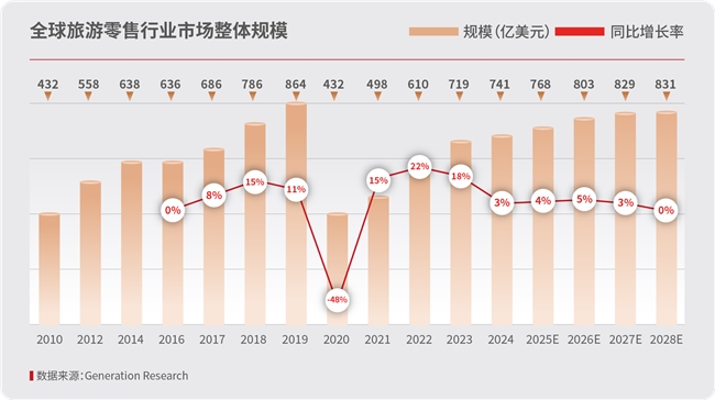 1.全球市場(chǎng)保持復(fù)蘇勢(shì)頭。2024年,全球免稅及旅游零售市場(chǎng)規(guī)模為741.3億美元,同比增長(zhǎng)3%,恢復(fù)至2019年的85.8%,這一回升態(tài)勢(shì),得益于國(guó)際旅游復(fù)蘇、政策支持與市場(chǎng)開放、新興市場(chǎng)崛起及數(shù)字化轉(zhuǎn)型多重合力,行業(yè)活力持續(xù)釋放。
