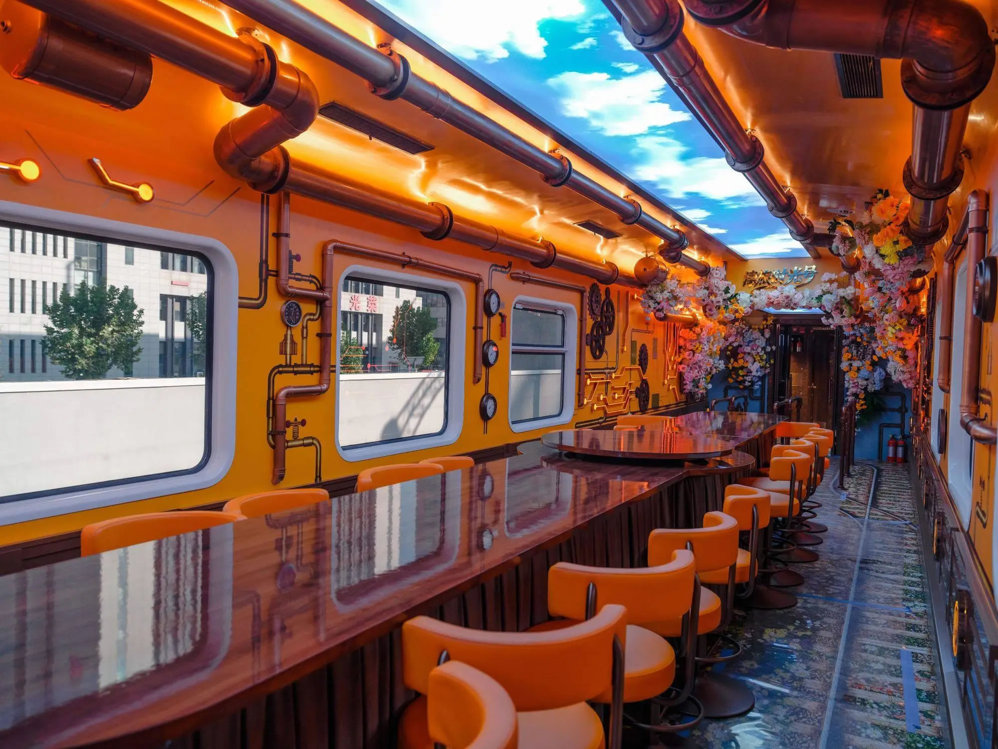 列車共設10節(jié)主題鮮明的特色車廂:分別為復古客座車廂、蒙太奇幻境互動演藝車廂、珍奇花園俱樂部車廂、沉浸式時空穿梭機車廂以及專屬VIP車廂,均以沉浸式戲劇化空間為理念,將座椅拆分重組,每節(jié)車廂形成互動或演藝區(qū),配備移動舞臺、隱藏燈軌和環(huán)繞音響。座椅、地面及軟裝材料兼顧安全與舒適,同時配備冷暖氣系統(tǒng)、移動吧臺和多功能儲物柜,提供全方位的互動體驗。