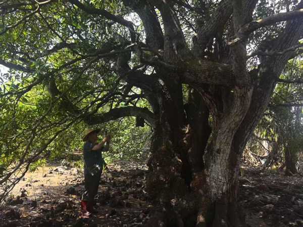 在鐵爐港紅樹(shù)林自然保護(hù)區(qū),4公頃面積孕育了500多株珍貴的古紅樹(shù),其中包括世界瀕危物種、國(guó)家一級(jí)保護(hù)野生植物紅欖李。該保護(hù)區(qū)內(nèi)的9株原生紅欖李構(gòu)成了國(guó)內(nèi)最大的紅欖李古樹(shù)群落,也是該物種在全球范圍內(nèi)重要的天然分布地。