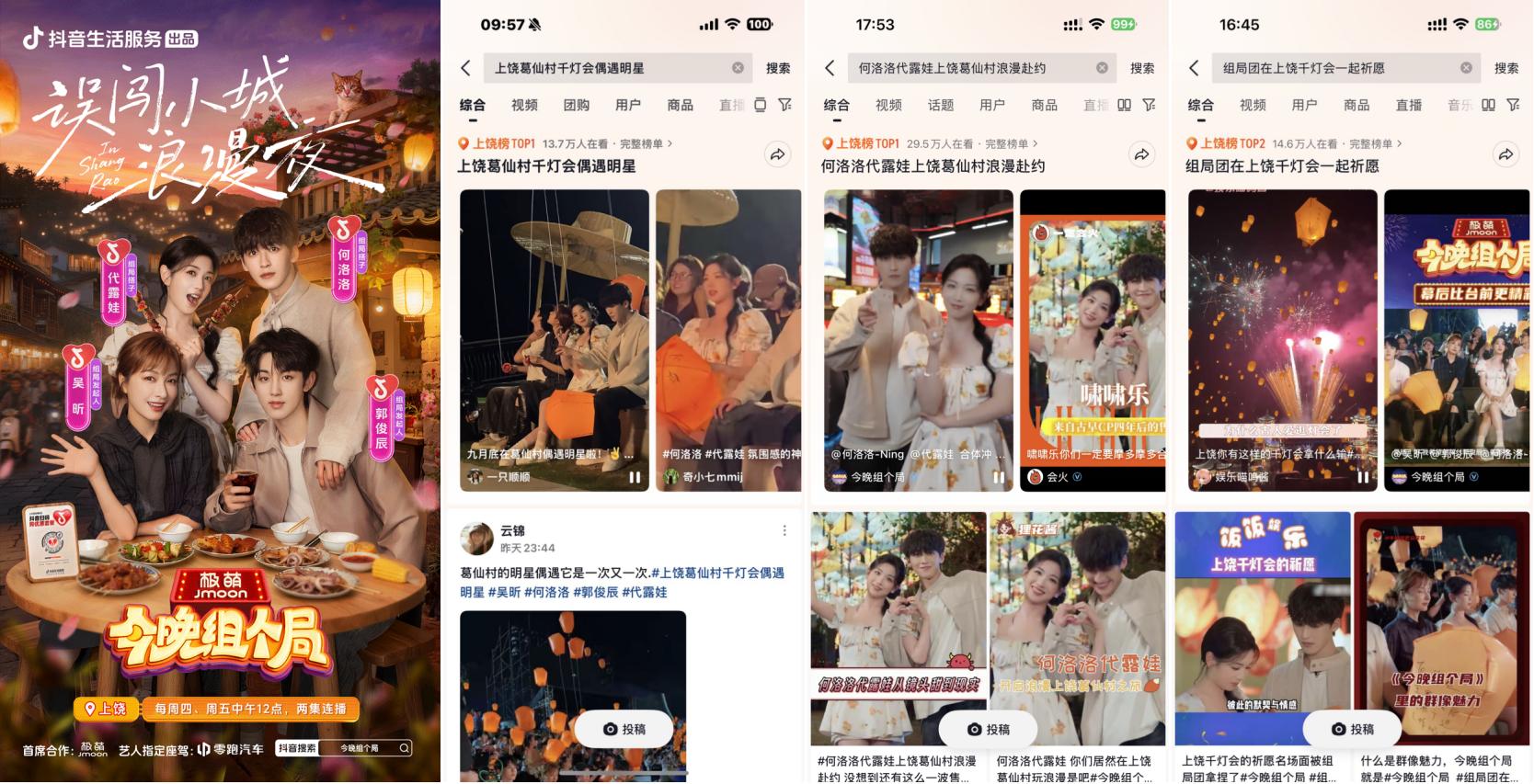 抖音牽手“秋日男友”魏哲鳴前往江西上饒葛仙村拍攝文旅宣發(fā)視頻引發(fā)廣泛關注,路透內(nèi)容#在葛仙村偶遇魏哲鳴 登上上饒同城榜TOP1;主視頻發(fā)布后,#江西的秋日封神時刻 更登頂同城榜及全國種草榜TOP6。活動還與綜藝《今晚組個局》實現(xiàn)聯(lián)動,吳昕、代露娃、郭俊辰、何洛洛等明星演員前往上饒拍攝定制化文旅內(nèi)容,#上饒葛仙村千燈會偶遇明星 #何洛洛代露娃上饒葛仙村浪漫赴約 等路透內(nèi)容與節(jié)目看點登頂上饒同城榜TOP1,#組局團在上饒千燈會一起祈愿 搶占同城榜TOP2。明星效應有效激發(fā)用戶出行意愿,葛仙村交易額同比403%顯著增長,持續(xù)引爆目的地&商家出圈。