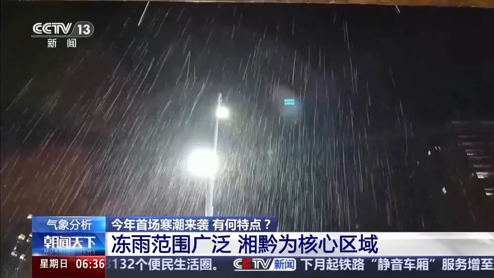 這是今冬首輪大范圍的凍雨天氣。寒潮滲透南下,在近地面形成冷墊。大氣的中層暖濕氣流發(fā)展,所以整層大氣特別容易形成上冷中間暖近地面也冷的格局,有利于凍雨的形成。