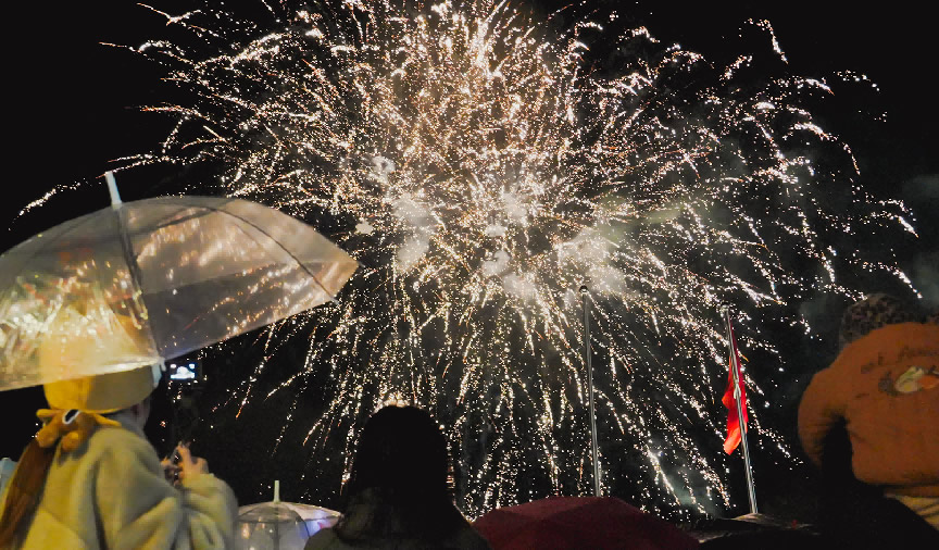 在京南華美勝地,游客們歡聚一堂,點(diǎn)燃跨年篝火,慶祝新年到來。