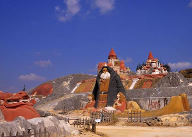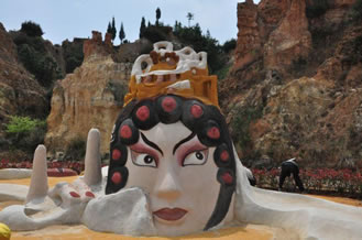 以沙成林,歷經(jīng)千古的沙林,必為一“怪”。眾峰參差,形異神幻,必是一“奇”。七彩紛呈,流光溢彩,妙筆在天。沙內(nèi)滲泉,甘露長(zhǎng)漣,滋沙養(yǎng)人。風(fēng)沙不揚(yáng),水沙不染,冥冥費(fèi)解。依山臨湖,磅礴氣概,天地奉獻(xiàn)。這寰于一絕的奇景,吸向性,潛在力,輻射度,都具有特殊價(jià)值,憑借這一世界獨(dú)有的資源優(yōu)勢(shì),借助沙雕藝術(shù)魅力,經(jīng)過精心策劃,認(rèn)真組織,于2001年至今成功舉辦了五屆主題分別為“千年夢(mèng)幻”、“走進(jìn)名著”、“五洲風(fēng)采”、“音樂神采”、“爨史風(fēng)情”的全球首創(chuàng)、世界唯一的國(guó)際彩色沙雕節(jié)暨沙雕大賽。