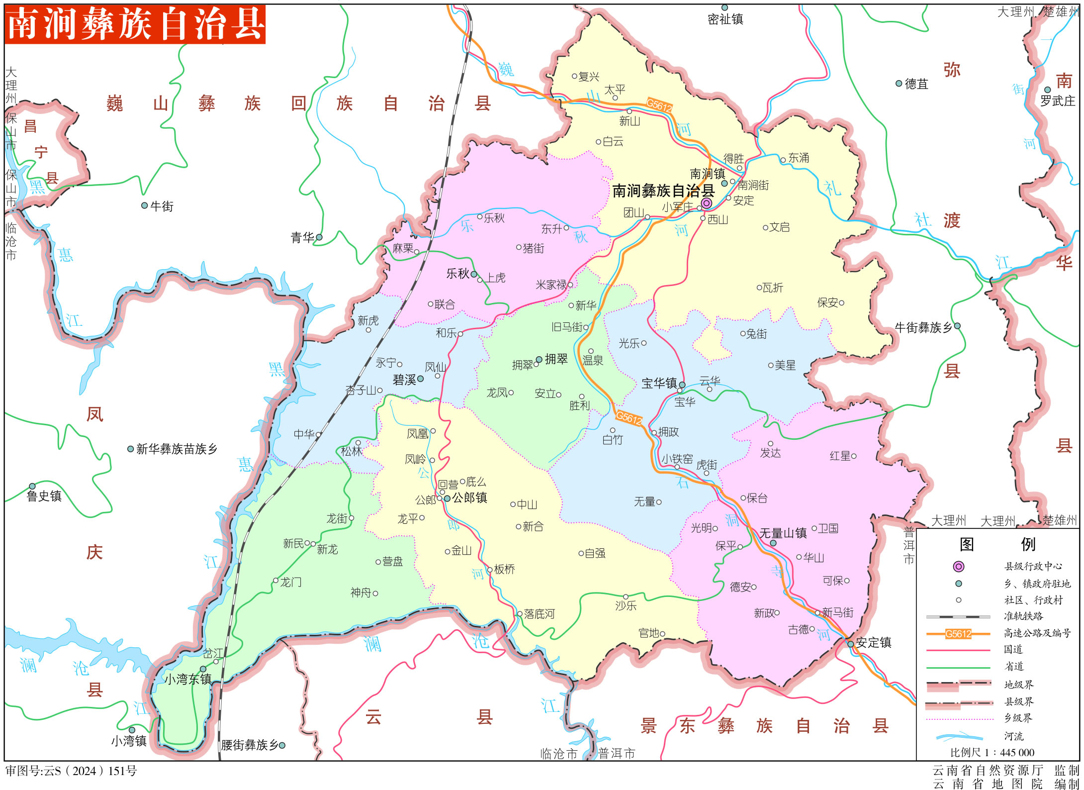 鎮(zhèn):南澗鎮(zhèn)、寶華鎮(zhèn)、公郎鎮(zhèn)、小灣東鎮(zhèn)、無量山鎮(zhèn)