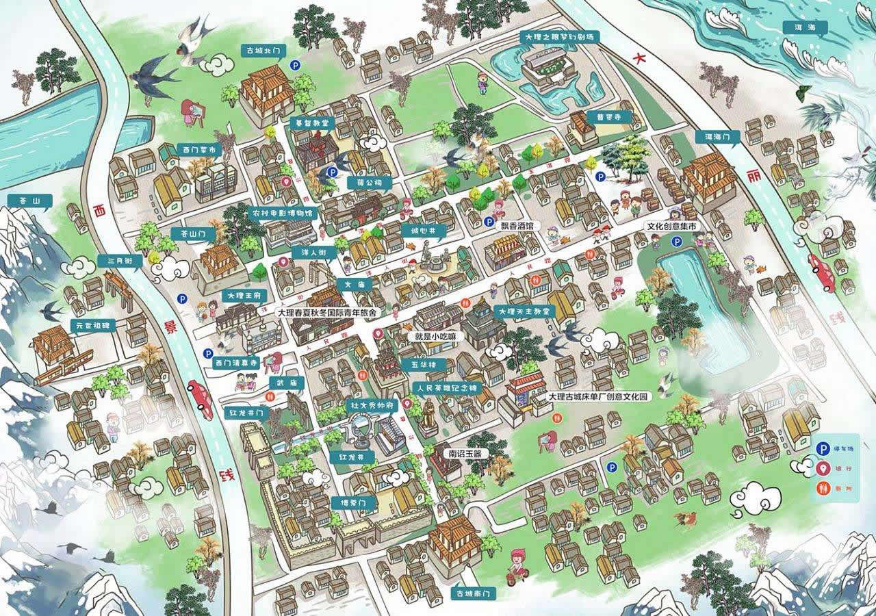 大理古城的古代風(fēng)景營造經(jīng)驗(yàn)屬于特有的中國現(xiàn)代城市風(fēng)景營造,將自然環(huán)境與人工環(huán)境相融合,形成了悠然從容的城市特點(diǎn),使中國的風(fēng)景格局具有民族性、地域性。