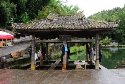繼續(xù)沿著小河和荷塘走,每隔一段會有一個古樸典雅的小亭子,在水邊矗立,村婦在小亭子里洗衣,這是全國獨(dú)有的洗衣亭,在和順有六座。洗衣亭可以洗衣,納涼,也可以遙望遠(yuǎn)方,寄托相思。