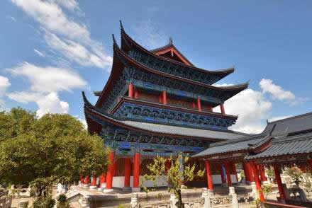 文昌宮及觀景臺位于古城獅子山西側(cè)。始建于清雍正元年(1723年),為麗江首任知府楊馝遷建,是麗江古城內(nèi)的道教寺廟。