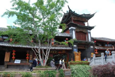 木府原為麗江世襲土司木氏的衙署,位于古城獅子山東麓,始建于元代(公元1271~1368年),1998年重建后改為古城博物院。木府占地46畝,府內(nèi)有大小房間共162間,中軸線長369米,三清殿、玉音樓、光碧樓、護法殿、萬卷樓、議事廳、忠義坊由西向東排列井然。其內(nèi)懸掛有歷代皇帝欽賜的匾額十一塊,反映了木氏家族的盛衰歷史。講述麗江木氏土司風(fēng)云故事的電視劇《木府風(fēng)云》就是在這里拍攝的。