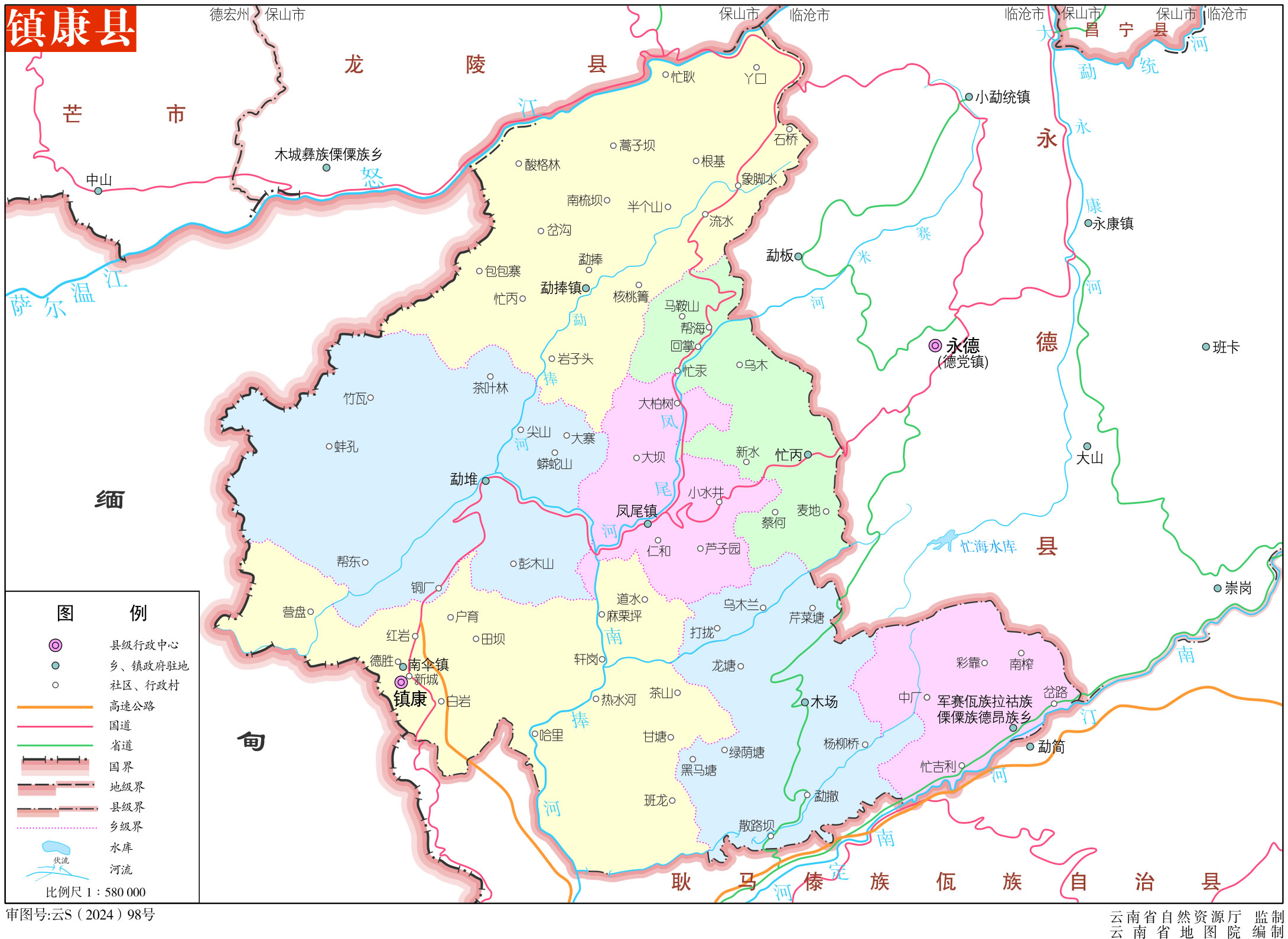 鎮(zhèn)康縣轄3個鎮(zhèn)、4個鄉(xiāng):