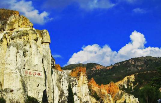 國家AAAA級旅游區(qū)——彩色沙林云南省曲靖市南部陸良縣的馬街鎮(zhèn)境內(nèi),占地25平方公里,保護(hù)區(qū)面積52.8平方公里,是云南旅游精品線路上的重要景區(qū),距陸良縣城以南18公里,距石林40公里、昆明130公里、瀘西50公里、羅平96公里,具有優(yōu)越的區(qū)位優(yōu)勢和便捷的通達(dá)條件。(除此之外,沙林還有很多集科學(xué)和歷史為一體的人文景觀;主要有34個洞穴構(gòu)成的“洞穴度假村”、“三十六計(jì)洞穴浮雕”、“洞穴舞廳”、“沙地跑馬場”、“古棧道”、“峰火臺”、“古城堡”、“《爨史》浮雕”、“爨府玄 門”、“文房四寶(石筆、石墨、石硯、石紙)”、“碑林”、“化石門”、“南蠻乾門”、“彝家寨門”、“孟獲寨門”、“孟獲王府”、“沙雕賽區(qū)”、“戰(zhàn)馬坡”、“盤蛇谷”、“蠻王古墓”、“竹園”“千年古藤”、“黑泉”、“挑斷口子”等。)