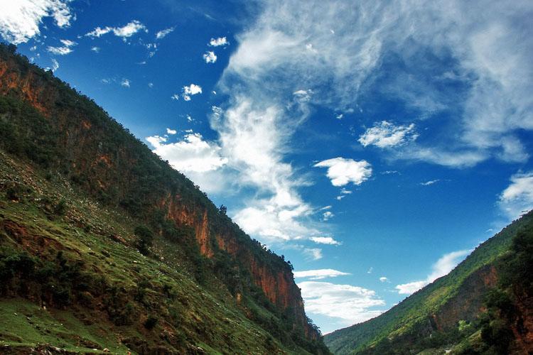 從馬雄山往西,有七彩大峽谷。峽谷起自大坡,終至德澤,全長(zhǎng)57公里。峽谷之內(nèi)山高水長(zhǎng),兩岸石壁呈紅、黃、白、綠、藍(lán)、青、紫等各種色調(diào)故名“七彩谷”。