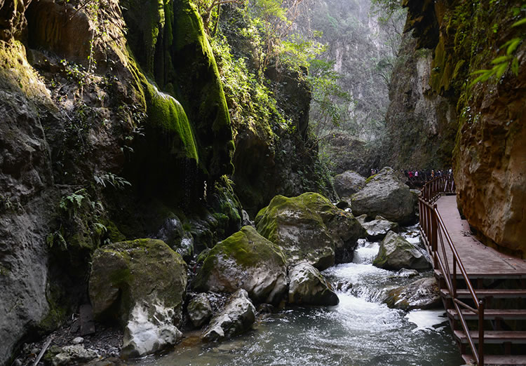 大地縫旅游景區(qū)位于縣城東南60千米的雨碌鄉(xiāng)。入口處稱“生命之門”。洞內頂部呈弧形,有上億年巖漿形成的道道褶皺,當?shù)厝朔Q“天花板”,長約20余米。過了天花板,但見青天一線,在綿延曲折的10余千米地縫中,兩山最窄處僅1.6米,最寬處不過20余米。