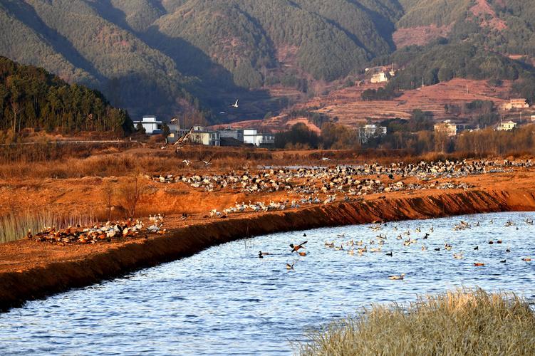 會澤黑頸鶴國家級自然保護區(qū)位于滇東北烏蒙山區(qū)中部,距縣城54km,在東經(jīng)103度15分~22分,北緯26度38分~45分之間,海拔2490~2900m,年平均氣溫9.8攝氏度,有大橋、楊梅山、李家灣、磨盤卡和地得卡5個村委會。會澤至巧家的公路從躍進水庫水庫右側經(jīng)過。水庫水域面積793hm2,庫容達5x106立方米,周圍有華山松、云南松。這個高原湖泊的形成,改變了當?shù)氐臍夂颦h(huán)境、資源環(huán)境,每年冬末春初,黑頸鶴、灰鶴、斑頭雁、黃鴨等數(shù)千只涉禽和水禽飛到這里越冬。