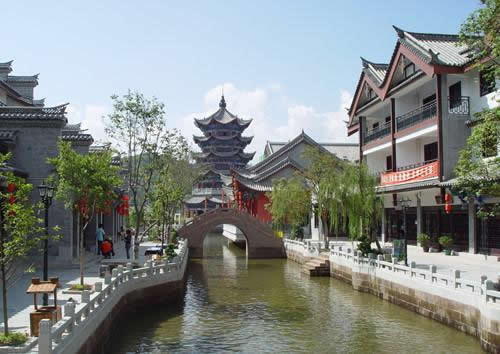 茶花溪:溪寬2-2.5米,水較淺流速較快,主要展現(xiàn)西部古鎮(zhèn)水鄉(xiāng)風(fēng)韻。