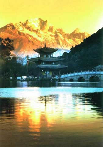 玉龍雪山隨著時(shí)令和明暗的交替,景觀也變幻無(wú)常。時(shí)而云蒸霧涌,玉龍乍隱乍現(xiàn),時(shí)而碧天如水,萬(wàn)里無(wú)云,群峰像被玉液清洗過(guò)一樣,晶瑩的雪光耀目晃眼,具有"白雪無(wú)古今,乾坤失曉昏"的光輝;東方初曉,晨曦罩峰頂,多彩的霞光映染雪峰,白雪呈緋紅狀與彩霞掩映閃爍;傍晚,斜輝把雪峰染抹得像披上紅紗,云朵帶