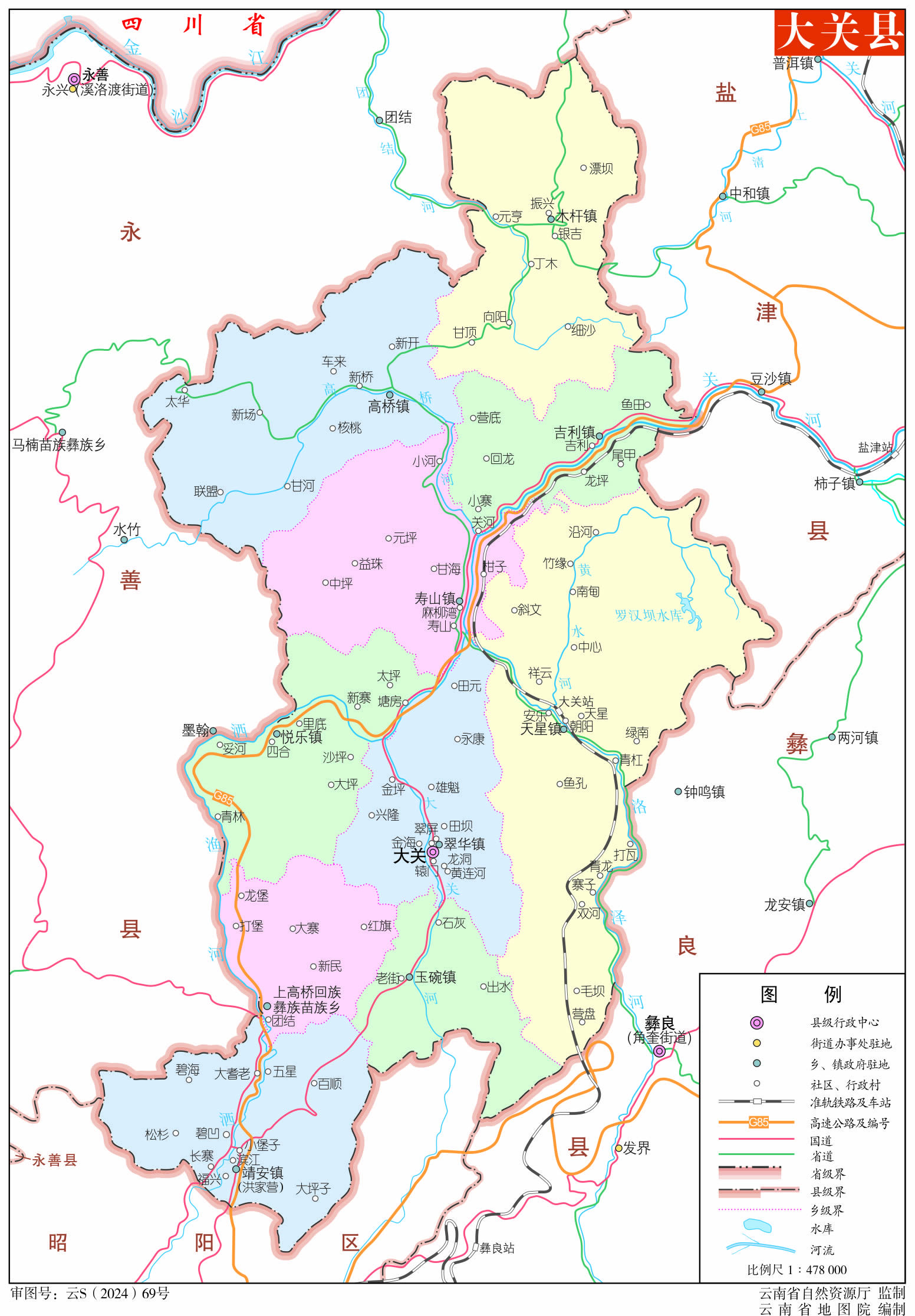 大關縣轄8個鎮(zhèn)、1個鄉(xiāng):