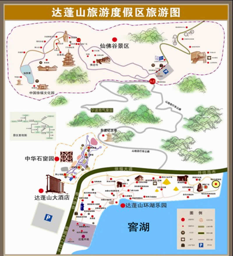 雅戈?duì)栠_(dá)蓬山旅游度假區(qū)是雅戈?duì)栠_(dá)蓬山旅游投資開發(fā)有限公司開發(fā)的以徐福東渡為主題的歷史文化遺跡與自然勝景和世界主題樂園相結(jié)合的旅游區(qū),其主要包括“80天環(huán)游地球”世界自然人文主題樂園、中國徐福文化園、中華石窗園、佛跡寺和雅戈?duì)柼煊蚓频晡宕髤^(qū)塊,集旅游、休閑、度假、娛樂于一體。旅游區(qū)融合自然山水、歷史人文和現(xiàn)代游樂。