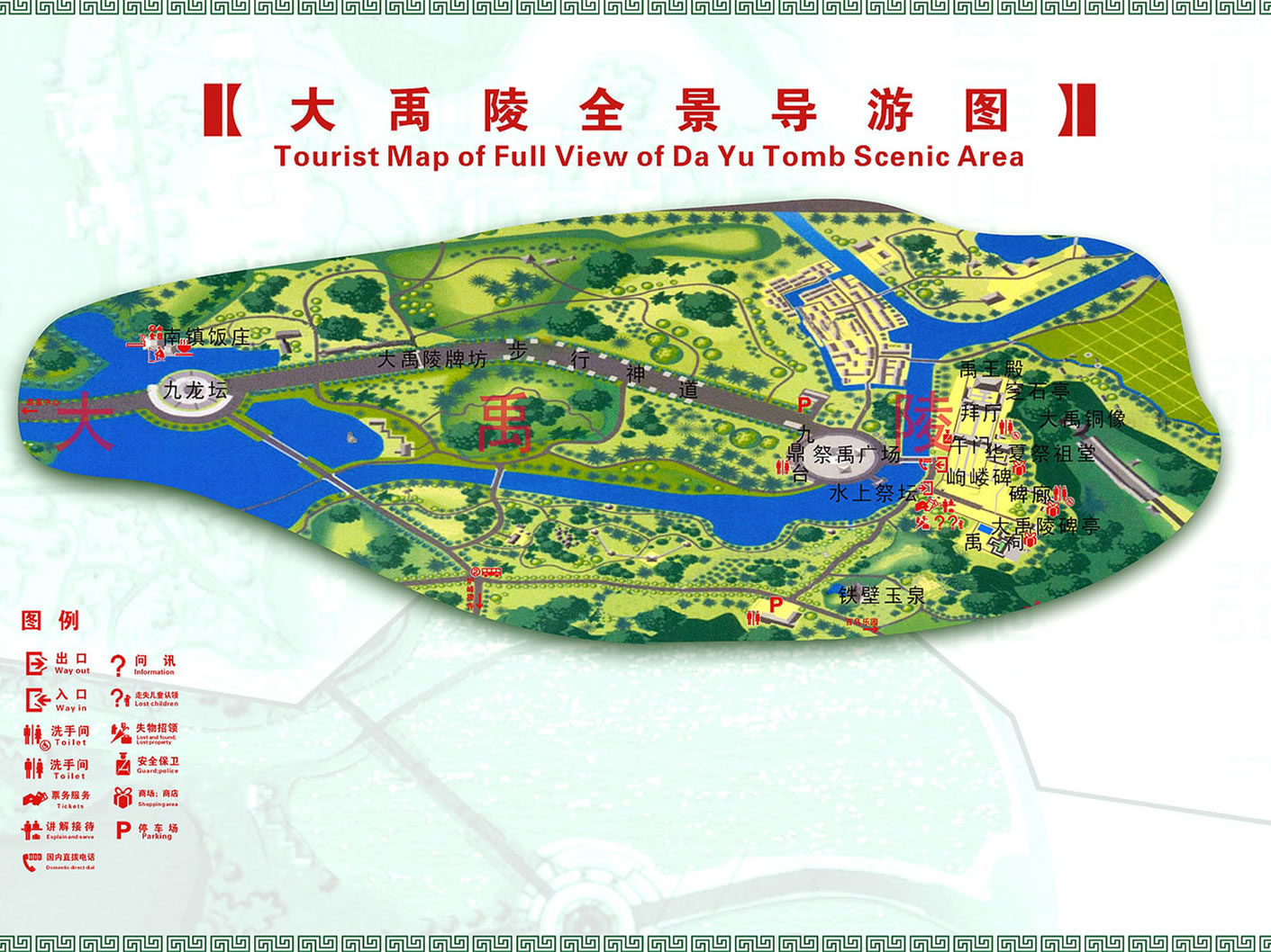 1995年5月15日,江澤民同志親臨大禹陵視察,高度評(píng)價(jià)大禹、大禹精神及公祭大禹陵活動(dòng),并親筆題寫了“大禹陵”坊額。