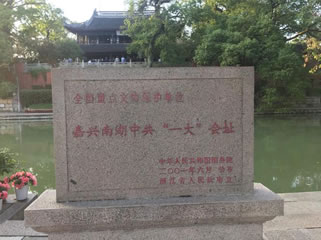 南湖不僅以秀麗的風(fēng)光享有盛譽(yù),而且還因中國共產(chǎn)黨第一次全國代表大會(huì)在這里勝利閉幕而備受世人矚目,成為我國近代史上重要的革命紀(jì)念地。1921年7月23日,中國共產(chǎn)黨第一次全國代表大會(huì)在上海秘密召開。會(huì)議臨近結(jié)束時(shí),遭法租界巡捕的襲擾而被迫停會(huì)。根據(jù)上海代表李達(dá)的夫人王會(huì)悟的建議,8月1日會(huì)議轉(zhuǎn)移到嘉興南湖的一條游船上繼續(xù)舉行。在這條紅船上,會(huì)議通過了中國共產(chǎn)黨的第一個(gè)《綱領(lǐng)》和第一個(gè)《決議》,并選舉了黨的中央局領(lǐng)導(dǎo)機(jī)構(gòu),宣告了中國共產(chǎn)黨的誕生,中國革命的航船從此揚(yáng)帆起航。