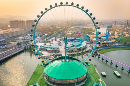 建設(shè)總高度達88米,掛有42個太空艙。從遠處看像是五彩繽紛的巨大風(fēng)車在緩緩轉(zhuǎn)動,又似一顆顆晶瑩的珍珠鑲嵌于大轉(zhuǎn)盤之上。
