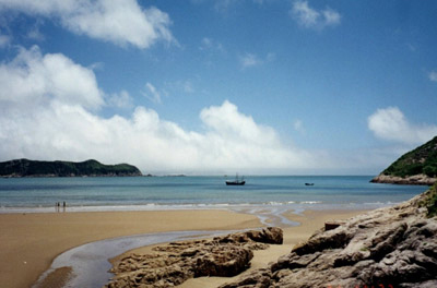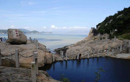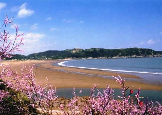 千步金沙——長1370米,寬400余米,從面積來說,是舟山群島第二大沙灘。從沙質(zhì)方面來書是進(jìn)行海浴、沙浴、陽光浴和沙灘漫步較理想、優(yōu)質(zhì)的沙灘。千步金沙屬細(xì)型沙質(zhì),細(xì)軟純凈,與普陀山的白步沙、千步沙和嵊泗的基湖沙灘相比較要細(xì)軟得多,與朱家尖的東沙、南沙相似,但還要松軟一些,且沙灘上沿有部分植被覆蓋,這一點其它沙灘是很難找到的。