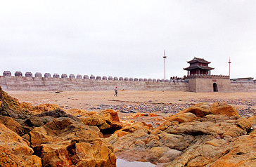 定海城——位于鵓鴣門后門沙灘上,是電影《鴉片戰(zhàn)爭》舟山攝制地主要景點之一,《鴉片戰(zhàn)爭》定海保衛(wèi)戰(zhàn)是整部電影的高潮,戰(zhàn)斗場面悲壯激烈,表現(xiàn)中國人民不屈不撓的精神。整個城墻長230米,寬12米,最高處12米,設(shè)城樓、古炮位、箭垛、旗桿等設(shè)施,飛檐翅角,黑瓦紅墻,整座城墻古樸典雅,雄偉壯麗。