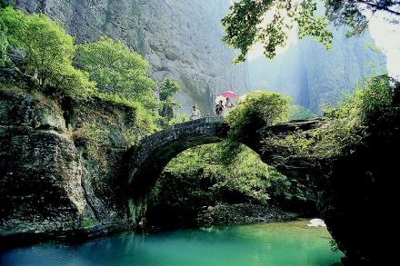 顯勝門景區(qū)范圍呈東北西南走向的狹長形。主要景點(diǎn)基本都分布在沸頭—南閤溪兩岸。徐霞客曾在游記中寫道:“溪北大山,自籍裊迤邐而來,皆層崖怪峰,變換闔辟,與云霧爭幻。”可謂一語中的,道出了該區(qū)風(fēng)景的特點(diǎn)。